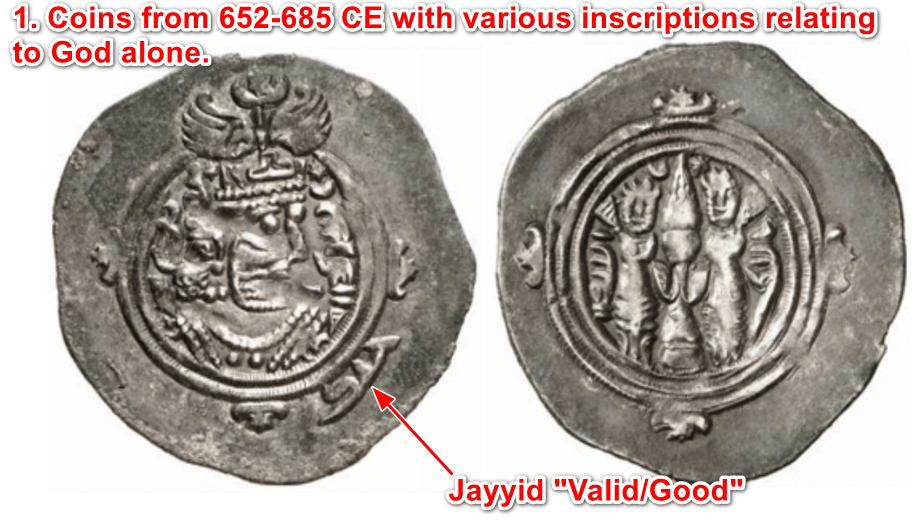 This article by Quran Talk Blog highlights this progression of normalisation of deviations. This article traces the evolution of the Islamic testimony of faith (Shahada) from its original Quranic form, “I bear witness there is no god beside God,” to the dual declaration (Shahadatan) that includes “Muhammad is the messenger of God.” Through an examination of early Islamic coinage, inscriptions, and historical records, the author demonstrates that the inclusion of Muhammad’s name in the testimony was a gradual development, primarily occurring during the reign of Umayyad Caliph Abd al-Malik (685-705 CE). The first state-sanctioned use of Muhammad’s name on coins appeared around 685-686 CE, with the full Shahadatan not documented until 697-698 CE. The article suggests that this change, occurring about 65 years after the Prophet’s death, was more a product of political and religious consolidation efforts by the Umayyad Caliphate than a practice established by the Prophet himself. The image below showcases this progression in time.