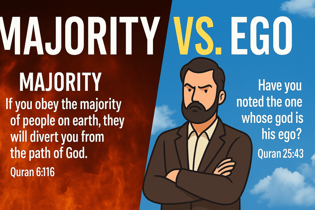 Thus, the Quran sets up a clear contrast: On one side is idolatry of the majority – the comfort of following ancestral or popular traditions; on the other side is idolatry of the ego – the pride of following one’s own unsubmitted mind. Both are condemned. The straight path of Islam steers between these extremes: it requires the humility to break from the crowd when the crowd is wrong, and the humility to submit one’s ego to something higher than oneself. What is that higher authority? It is neither the masses nor the self, but God and the guidance He sends via His revelations and messengers.