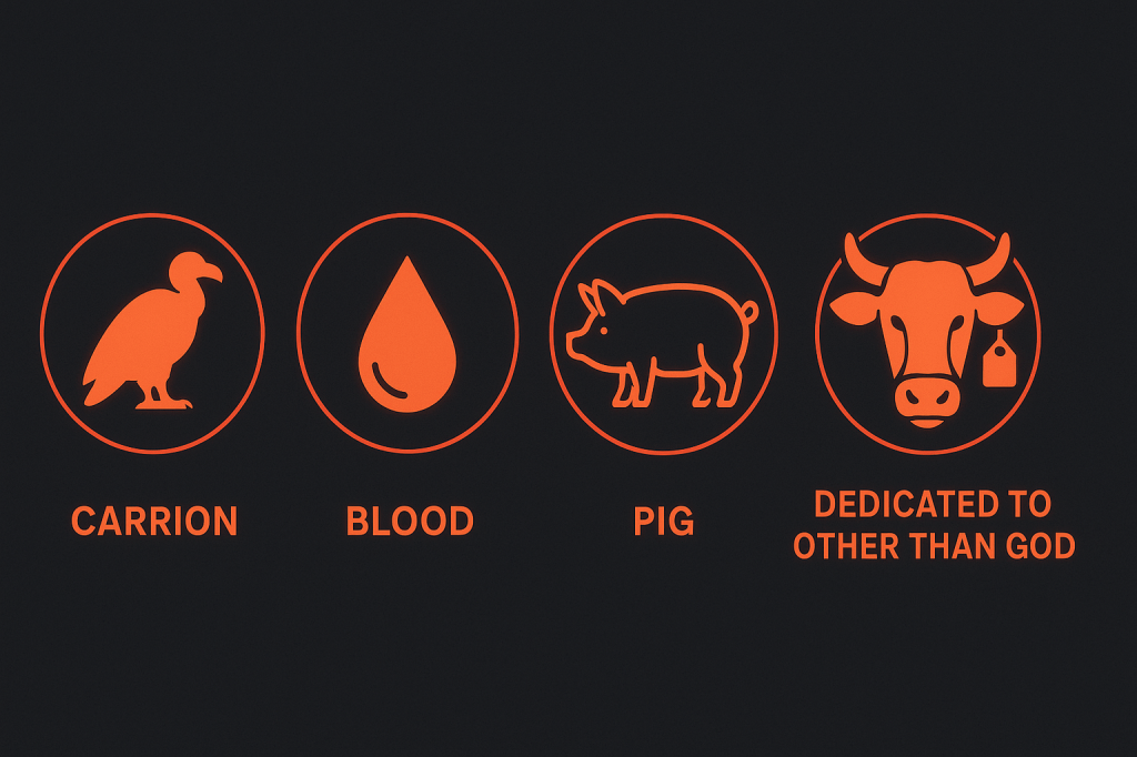 - Animal dedicated to other than God (“uhilla li-ghayrillah”)