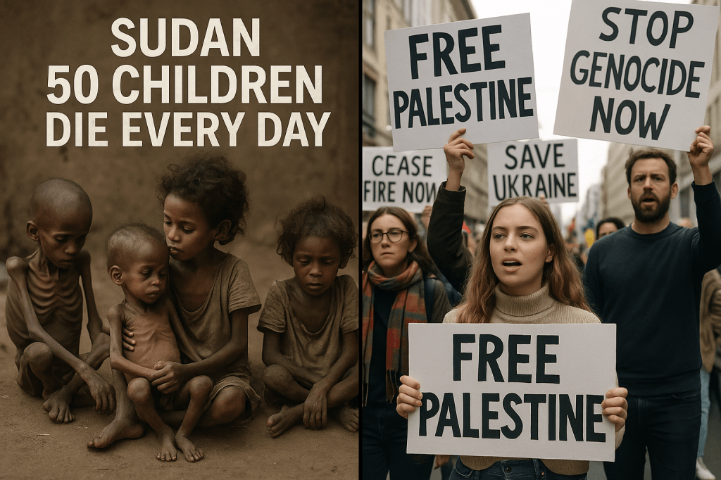 The evidence presented in this analysis leads to an undeniable conclusion: humanity’s selective outrage over certain conflicts while ignoring far greater catastrophes reveals not genuine humanitarian concern but political manipulation of human suffering. While hundreds of Palestinian children in detention generate global protests, 222,000 Sudanese children face imminent death from starvation in silence. While activists organize boycotts over Gaza, 100 Sudanese die daily from hunger without a single trending hashtag. While social media floods with content about one conflict, 473 million children worldwide suffer in conflict zones with 2024 being one of history’s worst years for children in war.