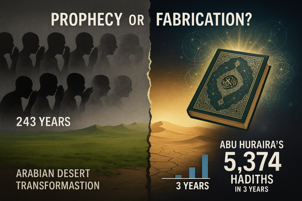 The statistics reveal an impossible scenario: Abu Huraira would have needed to memorize and accurately transmit 4.9 completely new hadiths every single day of his three-year companionship with the Prophet, while simultaneously learning the basics of Islam, performing prayers, and living daily life.