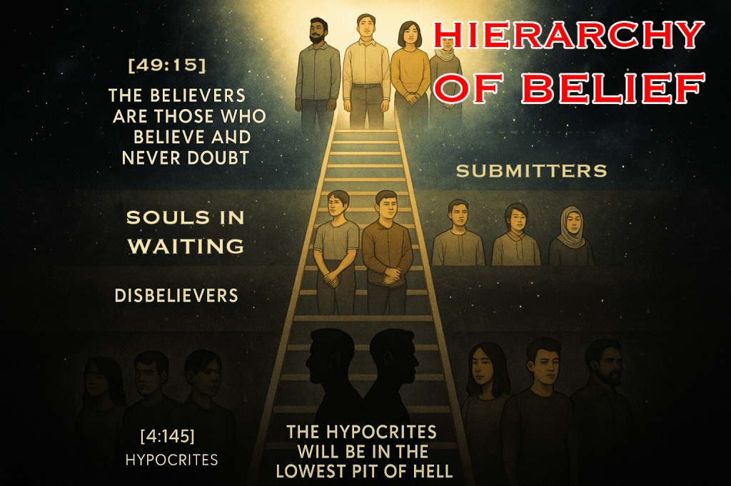 Level 2: Al-Muslimūn (The Submitters) – Those who submit to God’s will but haven’t yet achieved the certainty of believers. They follow commandments, perform rituals, live righteously, but belief hasn’t fully penetrated their hearts. They represent the majority of religious practitioners – sincere but still developing, committed but still questioning. This is not a shameful state but a recognized stage of spiritual development.