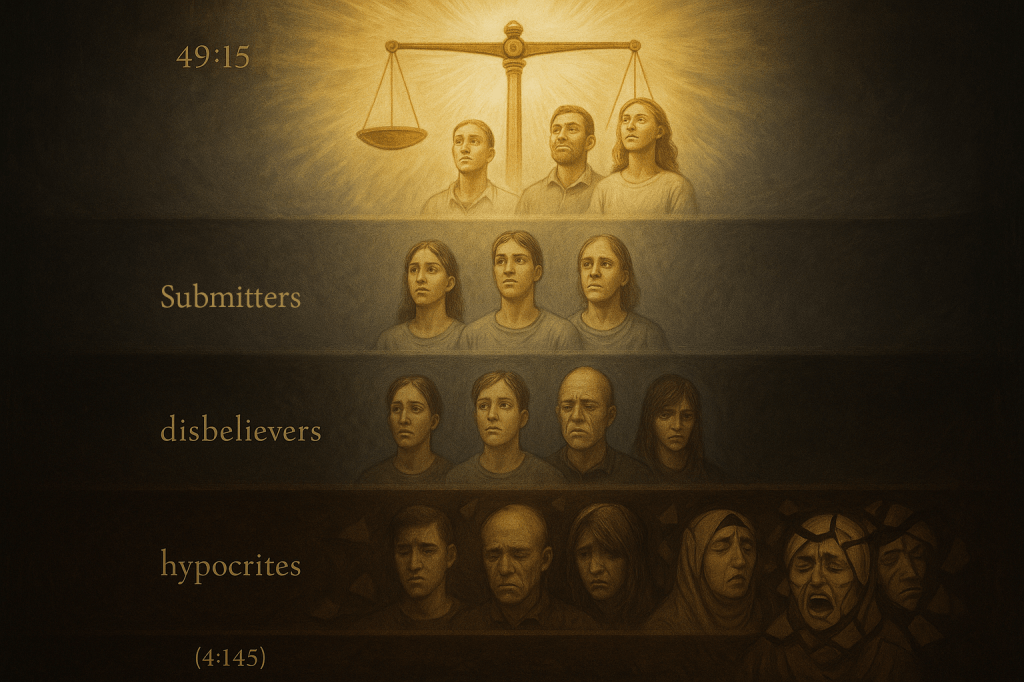 In the divine architecture of human salvation, God establishes a precise hierarchy that determines eternal destiny. This hierarchy is not based on tribal affiliation, religious labels, or outward rituals, but on the fundamental orientation of the soul – whether it maintains integrity or fragments into duplicity. The Quran presents a devastating truth: while believers who sin can repent and return, hypocrites undergo a transformation so complete that their very identity becomes corrupted, placing them in the lowest pit of Hell, below even those who openly reject faith.