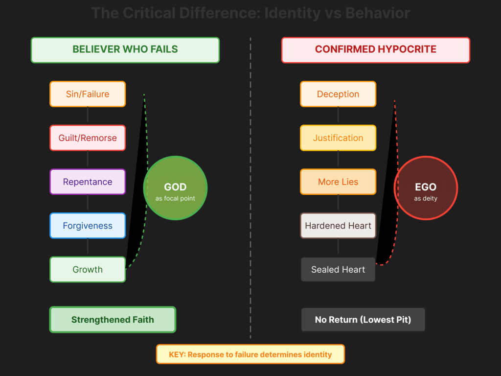 This addresses BELIEVERS who fail – not hypocrites. The critical difference: response to failure.
