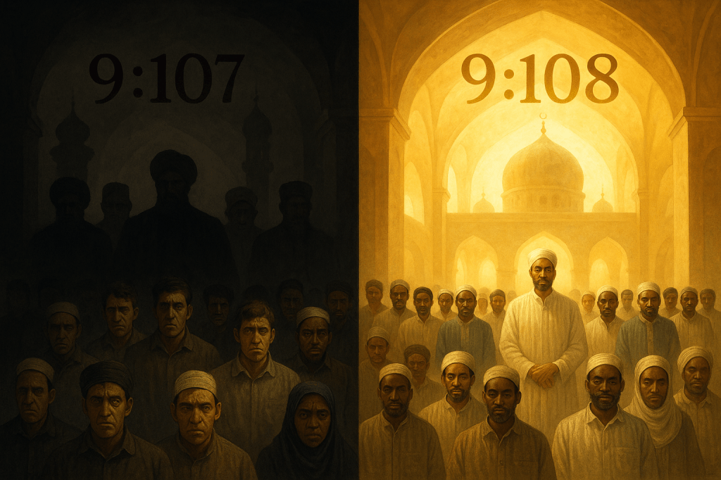 “The verse only applies to that specific historical masjid,” they argue desperately. This interpretation makes the Quran irrelevant to modern believers. If 9:107-108 only applied to one building 1400 years ago, why would God preserve it in His final scripture? The principle is eternal: hypocrite leadership transforms any masjid into Satan’s domain, whether in Medina then or Manhattan now.