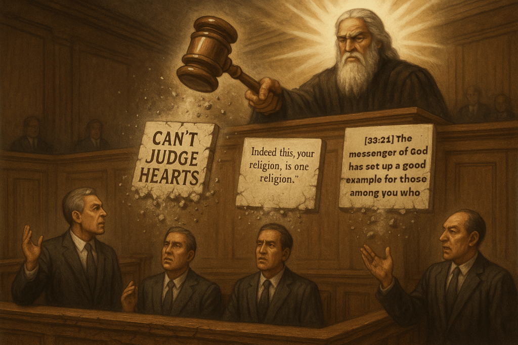 “We can’t judge what’s in people’s hearts,” they claim. But God doesn’t ask us to judge hearts—He commands us to observe actions. When someone rejects the messenger publicly, denies the mathematical miracle openly, and leads prayer hypocritically, we’re not judging their heart but responding to their manifest behavior. The Quran repeatedly commands believers to identify and avoid hypocrites based on observable criteria.