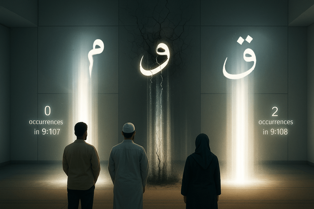 The apologists desperately want you to ignore the most damning evidence—the complete absence of Q-W-M in verse 9:107. This root, appearing 597 times throughout the Quran, defines standing, establishing, and maintaining. Its absence when describing Satan’s masjid versus its double presence in God’s masjid cannot be coincidence.