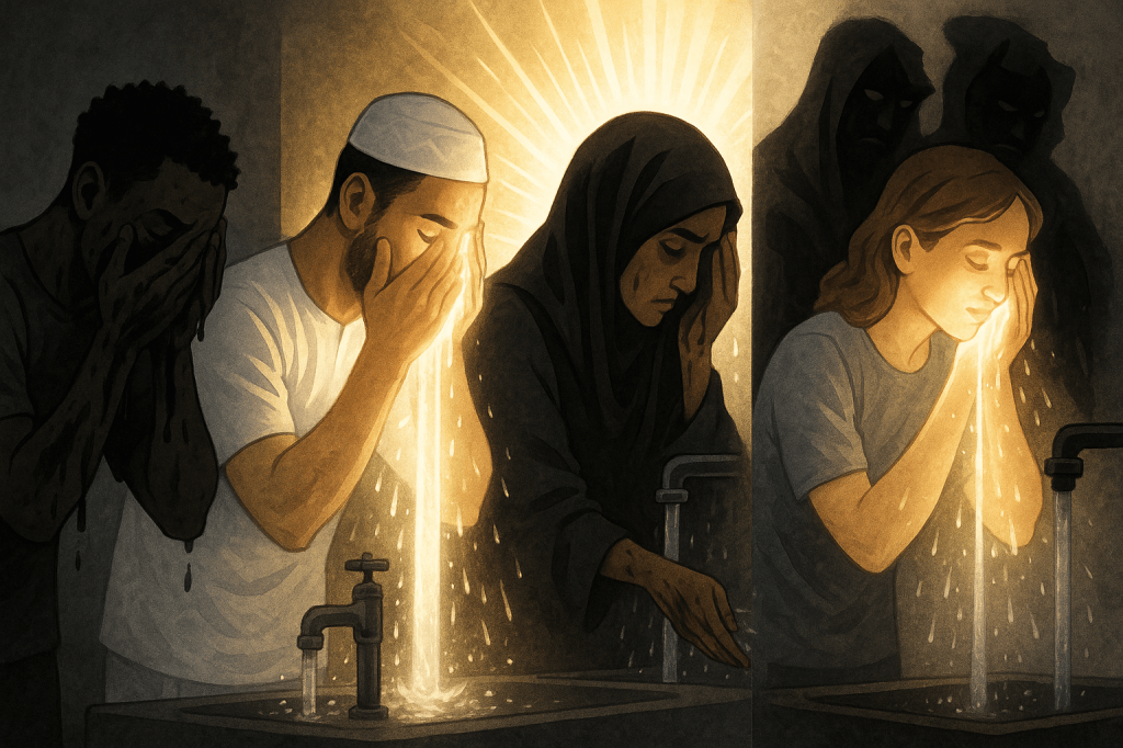 Physical ablution symbolizes spiritual purification. But what good is washing your body if you then stand behind someone whose heart rejects God’s messenger? The hypocrite imam’s spiritual filth contaminates the entire congregation’s worship, regardless of their physical cleanliness.