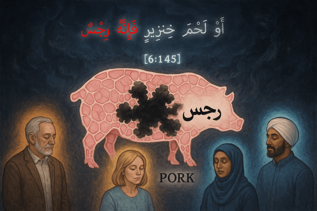 The Quran doesn’t describe pork as merely “forbidden for Muslims” or as a “ritual restriction.” It declares pork inherently contaminated—”rijs.” This Arabic term indicates something that is fundamentally impure, polluted, or contaminated. This isn’t about religious identity or cultural practice; it’s about the inherent nature of the substance itself.