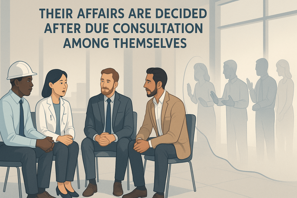 Moreover, accepting someone as your prayer leader is indeed a form of consultation – you’re consulting them about the direction of prayer, the timing, the recitations, and the spiritual conduct of worship. You’re acknowledging their authority to make religious decisions on your behalf during that prayer. If consultation about worldly affairs must be among believers only, how much more so consultation about the most important act of worship?