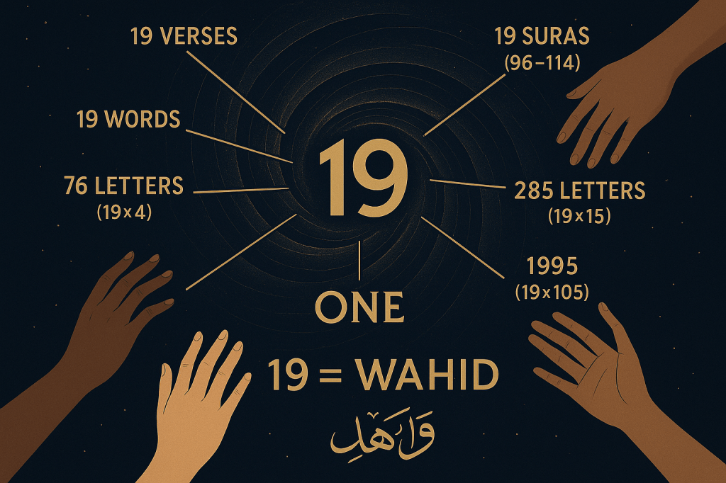 The choice of 19 as the Quran’s mathematical signature is itself significant. In Arabic numerology (gematria), where letters also serve as numbers, the word “wahid” (meaning “one”) has a numerical value of 19: waw (6) + alif (1) + ha (8) + dal (4) = 19. Thus, the number 19 represents the core message of the Quran: God is One. The mathematical structure of the Quran proclaims monotheism not only through its words but through its very numerical composition.