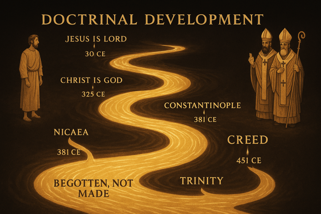 The progression from these simple confessions to the elaborate formulations of Nicaea, Constantinople, and Chalcedon reveals a pattern: complexity developed over time. Each council introduced new terminology because previous formulations proved inadequate to resolve ongoing disputes. If the apostles had taught a clear trinitarian doctrine, such development would be unnecessary—the church would simply repeat what it received. Instead, we see continuous theological innovation, each generation building on (and often contradicting) the previous generation’s formulations.
