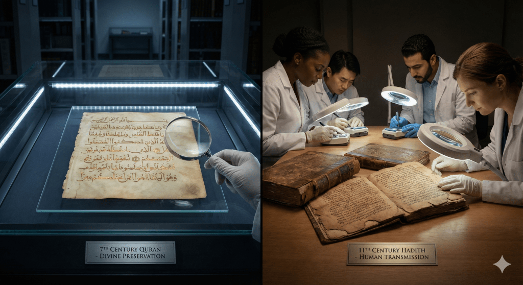 This comprehensive analysis examines the manuscript evidence for both the Quran and the hadith collections that many Muslims treat as authoritative sources alongside Scripture. We will compare carbon dating results, the time gaps between claimed authorship and physical manuscripts, and the profound theological implications of these findings. As we shall see, the evidence overwhelmingly demonstrates that God has fulfilled His promise to preserve the Quran while no such divine protection was granted to hadith literature. This distinction is not merely historical curiosity – it determines whether one’s religion comes from God or from human invention.