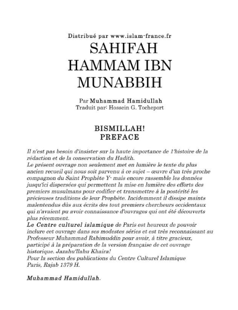 Note: The original 9th-century Berlin manuscript of the Sahifah is not publicly available. This is Hamidullah’s 1978 edition based on those later manuscripts.