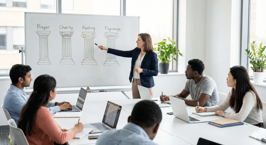 The Quran is not silent about what constitutes Abraham’s religious practices. In fact, it is remarkably explicit. The footnote at verse 2:135 in The Final Testament translation states: “Abraham received a practical ‘book’ that included all the duties and practices of Islam: Contact Prayers (Salat), obligatory charity (Zakat), fasting during Ramadan, and Hajj Pilgrimage.” This enumeration is comprehensive and deliberate. Notice what is included, and notice what is conspicuously absent.