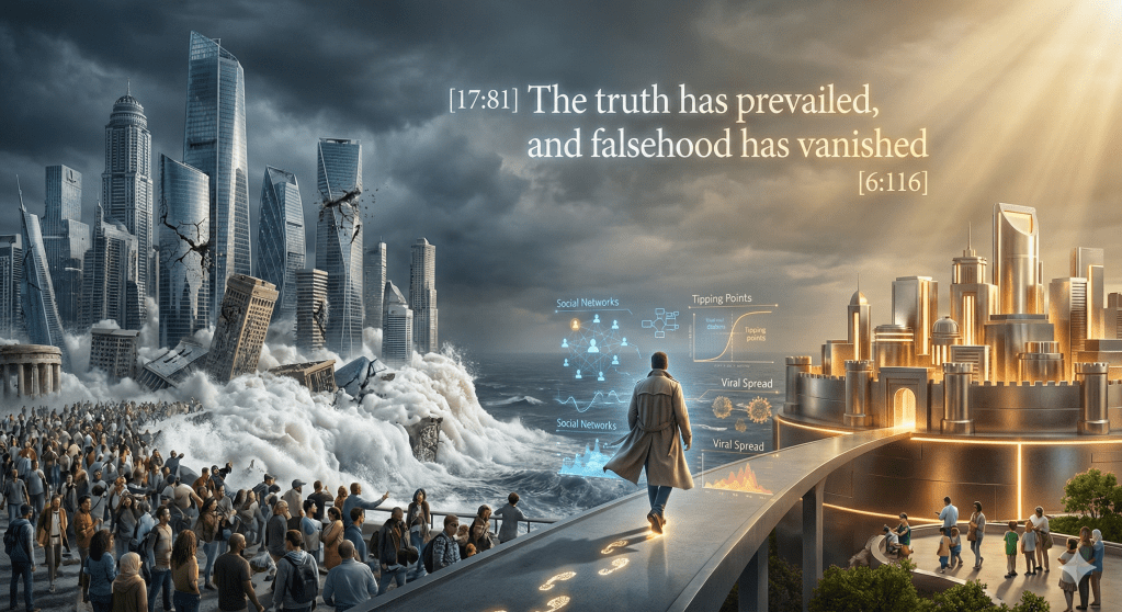The tipping point phenomenon is real but morally neutral. Ideas tip when the right conditions align, regardless of their truth. Divine guidance provides the evaluation framework that tipping points cannot. In a world of viral falsehood, algorithmic amplification, and epidemic opinion, the believer holds the rare immunity of truth-anchoring. We are impressed by evidence, not by numbers. We follow proof, not peers. We reverence God, even if we are in the minority. This is not stubbornness or arrogance; it is simply the accurate recognition that reality does not vote, truth does not trend, and the universe operates on principles that transcend our social mathematics. The foam will always be more visible, but the metal endures. And when the foam has dissipated and the viral moments are forgotten, the truth that we maintained – perhaps alone, perhaps mocked, perhaps at zero percent approval – will still be true. That is enough. That is everything.