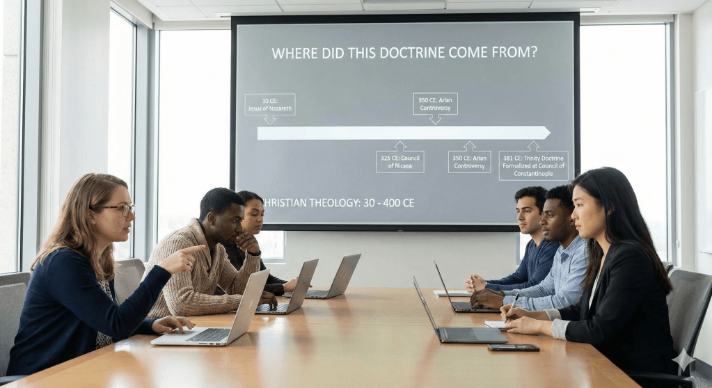 It is a remarkable fact that the word “Trinity” appears nowhere in the Bible. This central doctrine of Christianity – supposedly the most important truth about God’s nature – is never explicitly stated in their own scripture. The doctrine was developed over centuries through church councils, philosophical debates, and political compromises.
