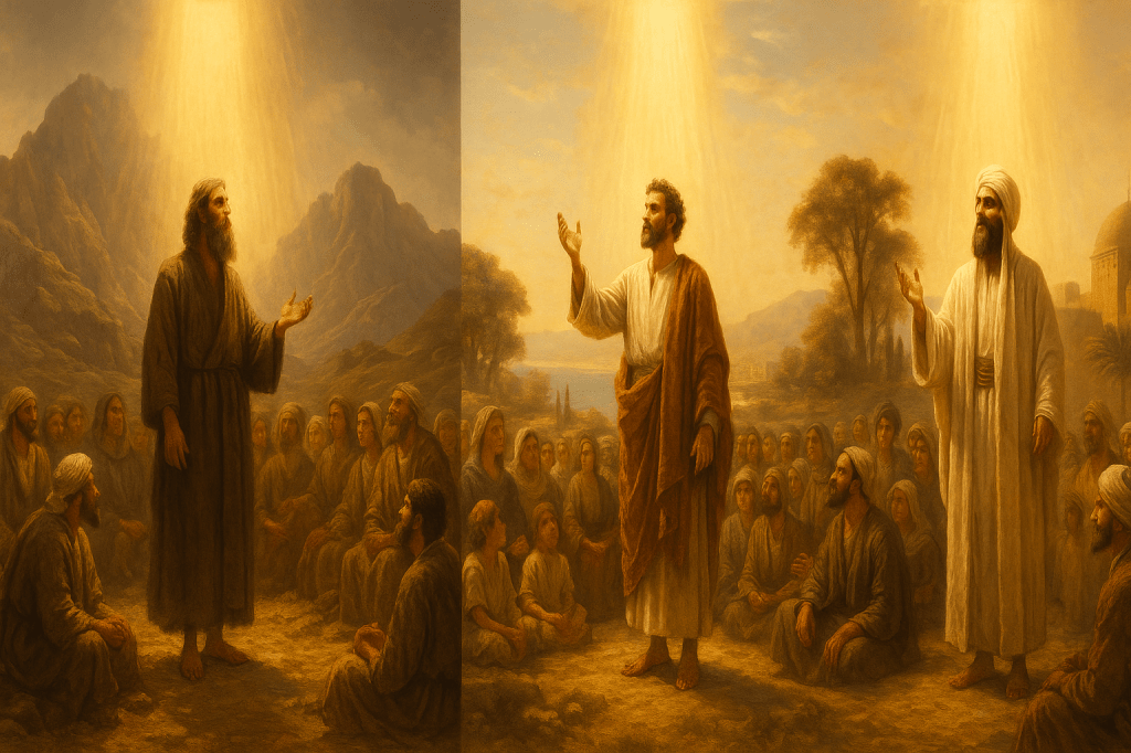 The consistency is remarkable. Jesus says he can do nothing of himself. Muhammad says he possesses no power to harm or benefit himself. Jesus says he follows the will of the Father. Muhammad says he follows only what is revealed. Jesus identifies himself as sent by God. Muhammad identifies himself as a human being like everyone else, whose only distinction is the inspiration he receives. Both messengers point away from themselves and toward the One God. Neither claims divinity. Neither claims independent authority. Both serve as conduits for the divine message — nothing more, nothing less.