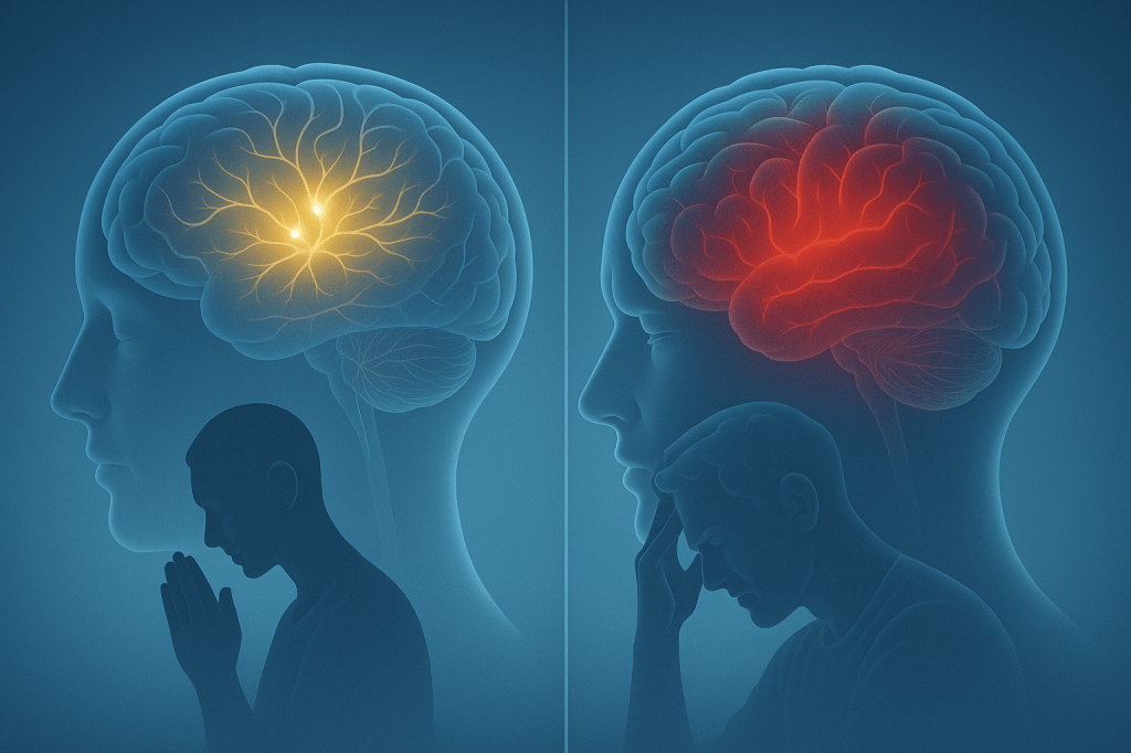 Modern neuroscience has confirmed what the Quran has taught for over 1,400 years: surrendering to a higher power reduces anxiety, activates the prefrontal cortex, and triggers the release of calming neurochemicals. A comprehensive meta-analysis published in JAMA Psychiatry found that individuals with strong religious commitment had significantly lower rates of depression, anxiety, and substance abuse (Source: JAMA Psychiatry, 2021). Researchers at the University of Pennsylvania’s Center for Neurotheology found that prayer and meditation practices activate the prefrontal cortex and produce measurable increases in serotonin and dopamine (Source: Andrew Newberg, “Neurotheology,” Frontiers in Psychology, 2018).